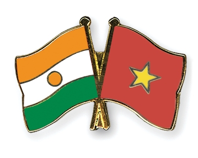 Selbstverständlich sind die Fahnen-Pins auch in umgekehrter Zusammenstellung erhältlich: Links die vietnamesische Fahne und daneben die nigrische Flagge.