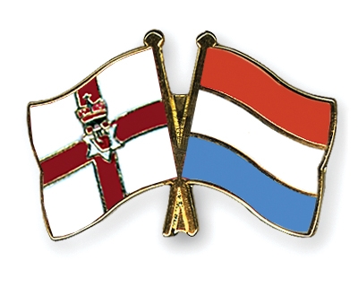 Selbstverständlich sind die Fahnen-Pins auch in umgekehrter Zusammenstellung erhältlich: Links die luxemburgische Fahne und daneben die nordirische Flagge.