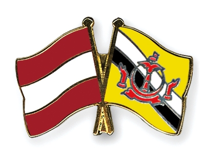 Die Cross Promotion AG liefert hochwertige Freundschaftspins mit der Österreich Fahne links und der Brunei-Darussalam Flagge auf der rechten Seite, wie oben abgebildet.
