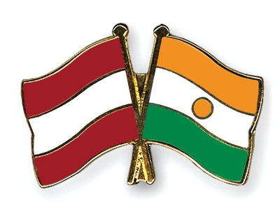 Selbstverständlich sind die Fahnen-Pins auch in umgekehrter Zusammenstellung erhältlich: Links die nigrische Fahne und daneben die österreichische Flagge.