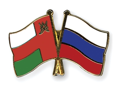 Selbstverständlich sind die Fahnen-Pins auch in umgekehrter Zusammenstellung erhältlich: Links die russische Fahne und daneben die omanische Flagge.