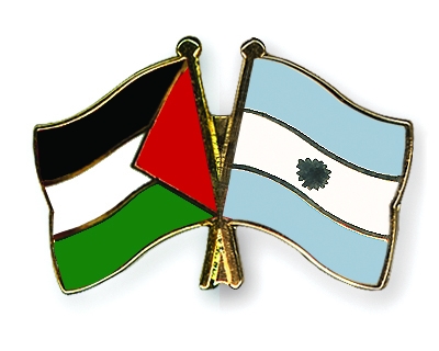 Selbstverständlich sind die Fahnen-Pins auch in umgekehrter Zusammenstellung erhältlich: Links die argentinische Fahne und daneben die palästinensische Flagge.