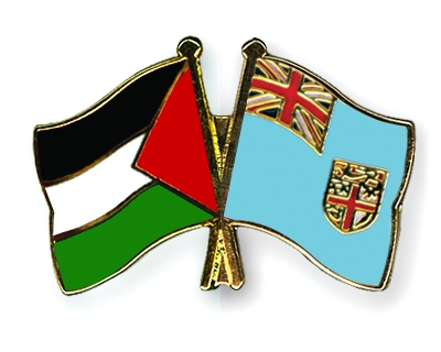 Selbstverständlich sind die Fahnen-Pins auch in umgekehrter Zusammenstellung erhältlich: Links die fidschianische Fahne und daneben die palästinensische Flagge.