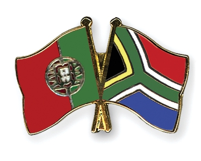 Selbstverständlich sind die Fahnen-Pins auch in umgekehrter Zusammenstellung erhältlich: Links die südafrikanische Fahne und daneben die portugiesische Flagge.