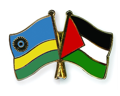 Selbstverständlich sind die Fahnen-Pins auch in umgekehrter Zusammenstellung erhältlich: Links die palästinensische Fahne und daneben die ruandische Flagge.