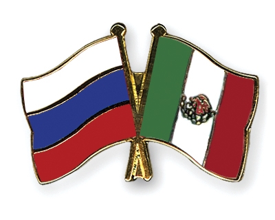 Selbstverständlich sind die Fahnen-Pins auch in umgekehrter Zusammenstellung erhältlich: Links die mexikanische Fahne und daneben die russische Flagge.