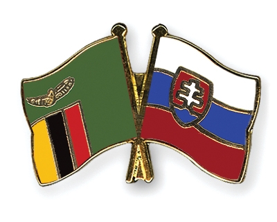 Selbstverständlich sind die Fahnen-Pins auch in umgekehrter Zusammenstellung erhältlich: Links die slowakische Fahne und daneben die sambische Flagge.