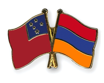 Selbstverständlich sind die Fahnen-Pins auch in umgekehrter Zusammenstellung erhältlich: Links die armenische Fahne und daneben die samoanische Flagge.