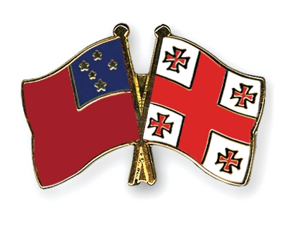 Selbstverständlich sind die Fahnen-Pins auch in umgekehrter Zusammenstellung erhältlich: Links die georgische Fahne und daneben die samoanische Flagge.