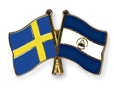Selbstverständlich sind die Fahnen-Pins auch in umgekehrter Zusammenstellung erhältlich: Links die nicaraguanische Fahne und daneben die schwedische Flagge.