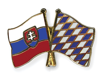 Selbstverständlich sind die Fahnen-Pins auch in umgekehrter Zusammenstellung erhältlich: Links die bayerische Fahne und daneben die slowakische Flagge.