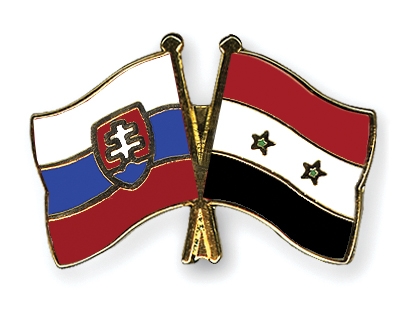 Selbstverständlich sind die Fahnen-Pins auch in umgekehrter Zusammenstellung erhältlich: Links die syrische Fahne und daneben die slowakische Flagge.