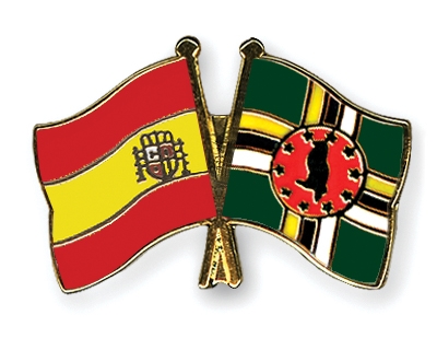 Die Cross Promotion AG liefert hochwertige Freundschaftspins mit der Spanien Fahne links und der Dominica Flagge auf der rechten Seite, wie oben abgebildet.