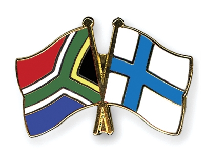 Selbstverständlich sind die Fahnen-Pins auch in umgekehrter Zusammenstellung erhältlich: Links die finnische Fahne und daneben die südafrikanische Flagge.