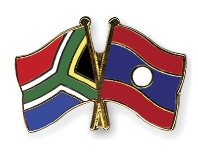 Die Cross Promotion AG liefert hochwertige Freundschaftspins mit der Südafrika Fahne links und der Laos Flagge auf der rechten Seite, wie oben abgebildet.