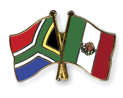 Die Cross Promotion AG liefert hochwertige Freundschaftspins mit der Südafrika Fahne links und der Mexiko Flagge auf der rechten Seite, wie oben abgebildet.