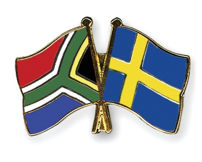 Selbstverständlich sind die Fahnen-Pins auch in umgekehrter Zusammenstellung erhältlich: Links die schwedische Fahne und daneben die südafrikanische Flagge.