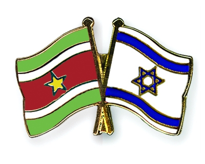 Selbstverständlich sind die Fahnen-Pins auch in umgekehrter Zusammenstellung erhältlich: Links die israelische Fahne und daneben die surinamische Flagge.