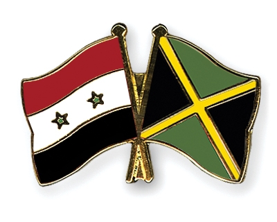 Selbstverständlich sind die Fahnen-Pins auch in umgekehrter Zusammenstellung erhältlich: Links die jamaikanische Fahne und daneben die syrische Flagge.
