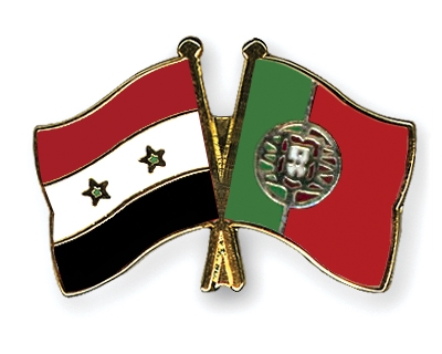 Selbstverständlich sind die Fahnen-Pins auch in umgekehrter Zusammenstellung erhältlich: Links die portugiesische Fahne und daneben die syrische Flagge.