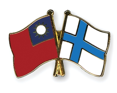 Selbstverständlich sind die Fahnen-Pins auch in umgekehrter Zusammenstellung erhältlich: Links die finnische Fahne und daneben die taiwanische Flagge.