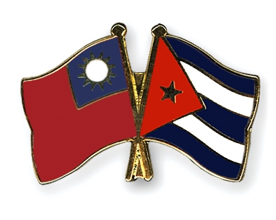 Selbstverständlich sind die Fahnen-Pins auch in umgekehrter Zusammenstellung erhältlich: Links die kubanische Fahne und daneben die taiwanische Flagge.