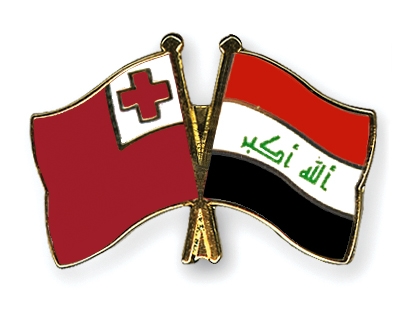 Selbstverständlich sind die Fahnen-Pins auch in umgekehrter Zusammenstellung erhältlich: Links die irakische Fahne und daneben die tongaische Flagge.