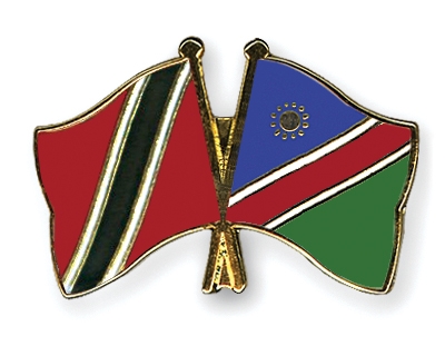 Selbstverständlich sind die Fahnen-Pins auch in umgekehrter Zusammenstellung erhältlich: Links die namibische Fahne und daneben die trinidad-und-tobagische Flagge.