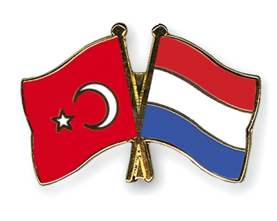 Selbstverständlich sind die Fahnen-Pins auch in umgekehrter Zusammenstellung erhältlich: Links die niederländische Fahne und daneben die türkische Flagge.