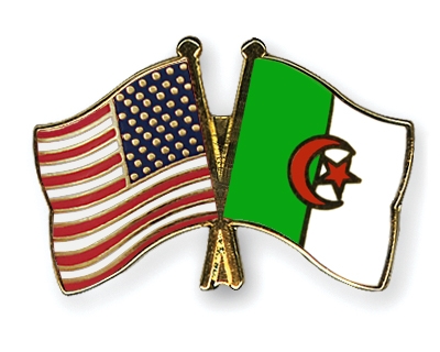 Selbstverständlich sind die Fahnen-Pins auch in umgekehrter Zusammenstellung erhältlich: Links die algerische Fahne und daneben die amerikanische Flagge.