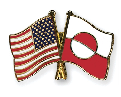 Selbstverständlich sind die Fahnen-Pins auch in umgekehrter Zusammenstellung erhältlich: Links die grönländische Fahne und daneben die amerikanische Flagge.