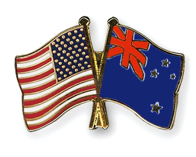 Selbstverständlich sind die Fahnen-Pins auch in umgekehrter Zusammenstellung erhältlich: Links die neuseeländische Fahne und daneben die amerikanische Flagge.