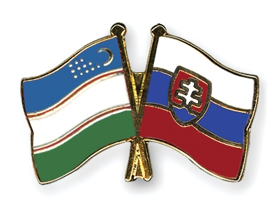 Selbstverständlich sind die Fahnen-Pins auch in umgekehrter Zusammenstellung erhältlich: Links die slowakische Fahne und daneben die usbekische Flagge.
