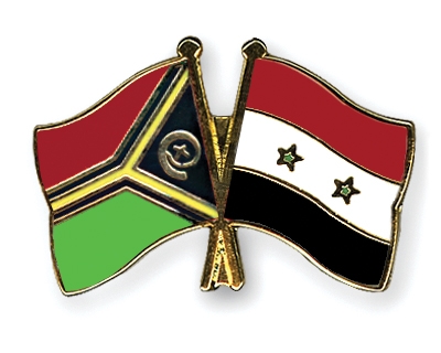 Die Cross Promotion AG liefert hochwertige Freundschaftspins mit der Vanuatu Fahne links und der Syrien Flagge auf der rechten Seite, wie oben abgebildet.
