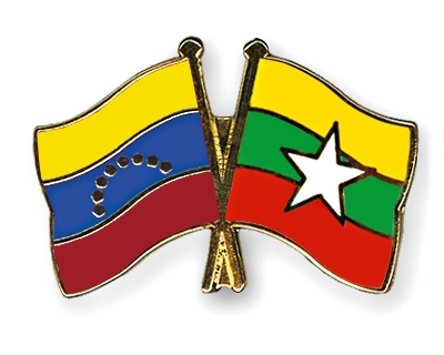 Die Cross Promotion AG liefert hochwertige Freundschaftspins mit der Venezuela Fahne links und der Myanmar Flagge auf der rechten Seite, wie oben abgebildet.