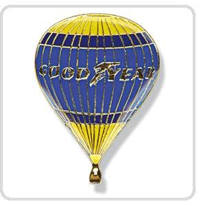 Pins: GOODYEAR BallonEisen/Soft-Emaille mit Epoxy-Harz, 3-farbig, Metall goldfarbenGrösse: ca. 30 x 22 mm