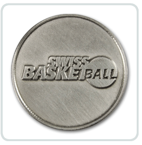 Pins: SWISS BASKETBALL SilberEisenprägung ohne Farbfüllung, mit 3D-EffektGrösse: ca. 23 mmBesonderheit: antik-silberfarben
