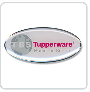 Pins: Tupperware Business SchoolSiebdruck, 4-farbig, Trägermaterial StahlGrösse: ca. 20 x 42 mm